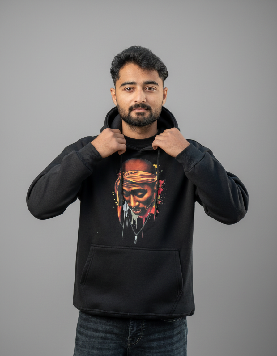 Make a statement with this premium black graphic hoodie, crafted from 100% cotton fleece for unbeatable warmth, softness, and comfort.
