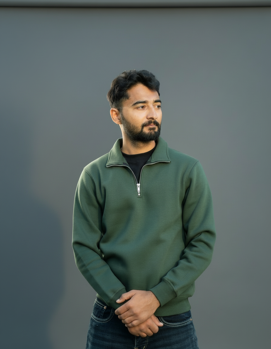 Experience comfort and style with our Men’s Olive Half-Zip Sweatshirt, crafted from 100% cotton fleece for superior softness and warmth. The rich olive colour gives a premium, modern look that pairs well with any outfit.